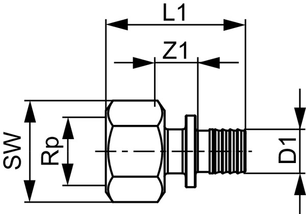 Mufa przejściowa z brązu do łączenia rur TECEflex ze złączkami gwintowanymi lub armaturą z gwintem zgodnie z normą EN 10226, za pomocą tulei zaciskowej, bez dodatkowych pierścieni uszczelniających typu O-ring. Złączka optymalizująca opór przepływu (wartość Zeta).