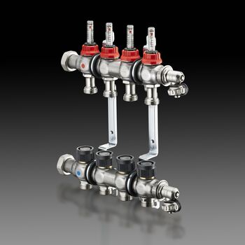belka zbierająca z wkładkami zaworowymi M 30 x 1,5 do regulacji termostatycznej lub elektronicznej