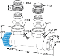 Termostatyczny zawór Multilux stosowany jest do podłączenia grzejników dolnozasilanych z przyłączem dwupunktowym, np. grzejników łazienkowych, grzejników uniwersalnych, itp. Rozstaw osi przyłączy 50 mm.