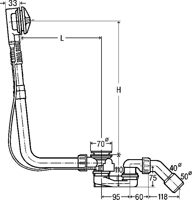 Multiplex-komplet odpływowo-przelewowy, jednostka funkcyjna, płaskie wykonanie: tylko 33 mm wymaganego miejsca z tyłu wanny, nie występuje: pokrętło, korek do zaworu. Wyposażenie: Syfon, łuk odpływowy 45°, zawór chromowany. Wyposażenie: Syfon, łuk odpływowy 45° bez możliwości klejenia, korek do zaworu chromowany. Dane techniczne: wysokość zamknięcia wodnego 50 mm. Wskazówka: Patrz aktualny przegląd wskazówek dotyczących zastosowania!, wg PN-EN 274, nr wzoru 6163.1PL, nr kat. 703 325,