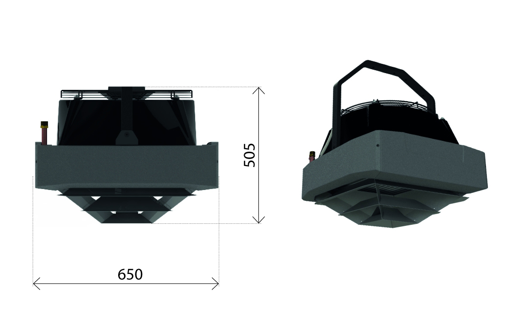 Zastosowanie nawiewnika powoduje równomierne rozprowadzenie nawiewanego powietrza z nagrzewnicy w czterech kierunkach. Zalecany szczególnie do nagrzewnic montowanych podstropowo w niskich pomieszczeniach.
