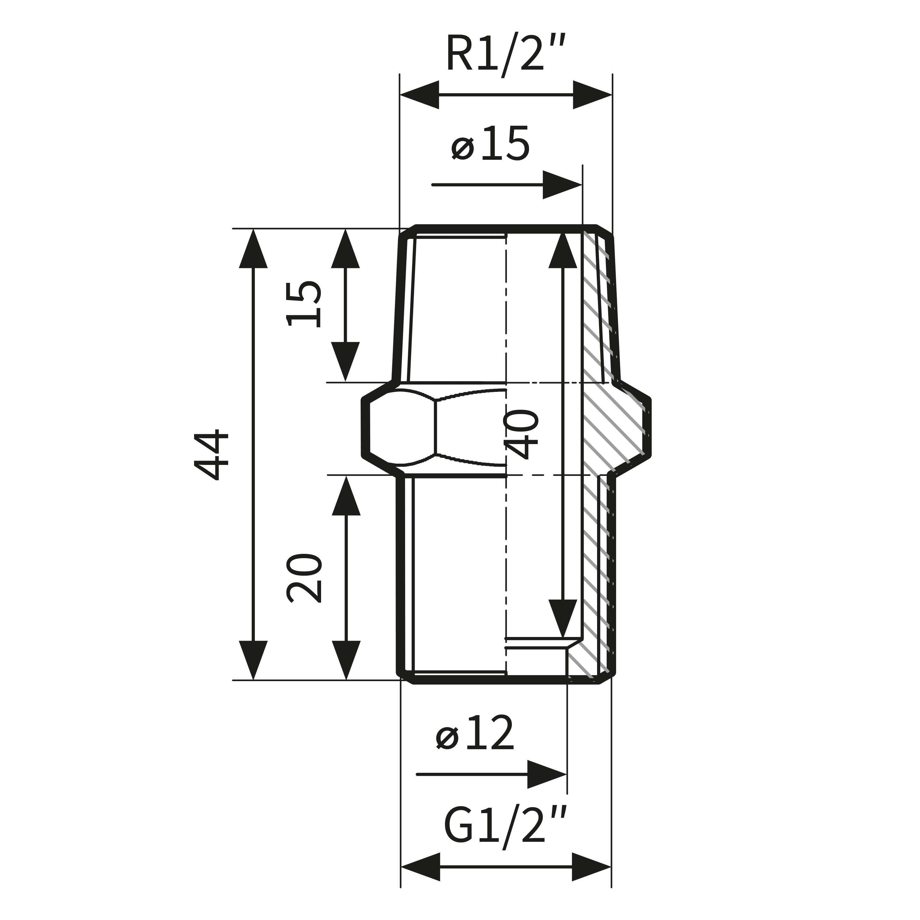 Nypel AFRISO, mosiądz, 1/2'' (GW x śrubunek)