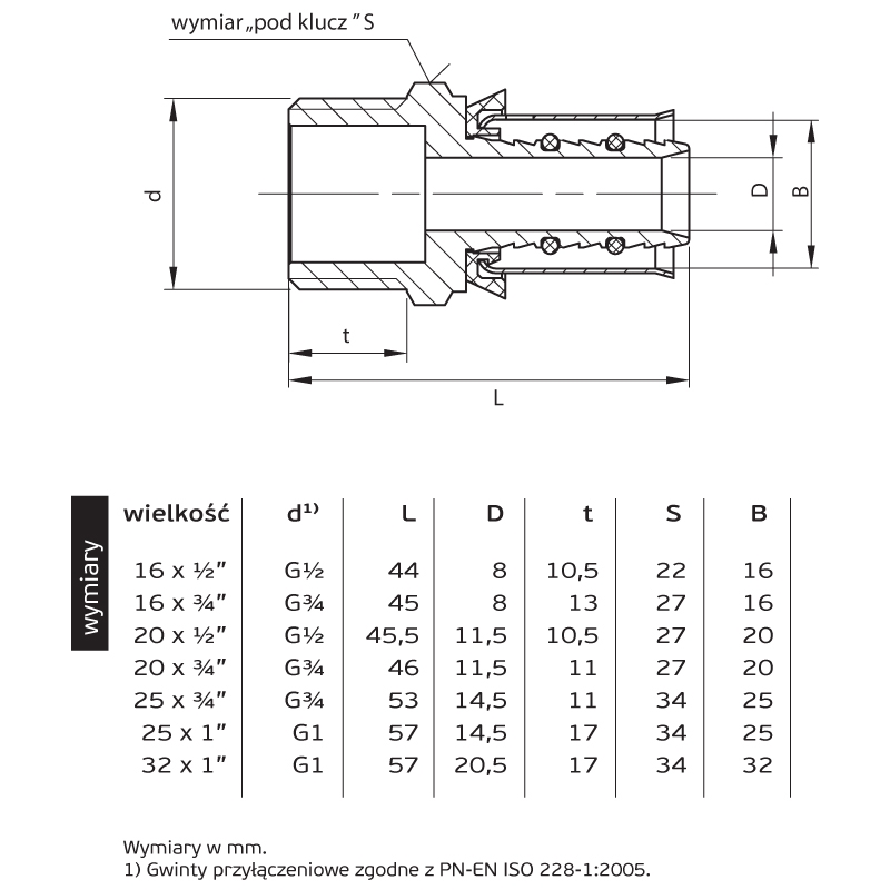 Znamionowa średnica wewnętrzna połączenia 1