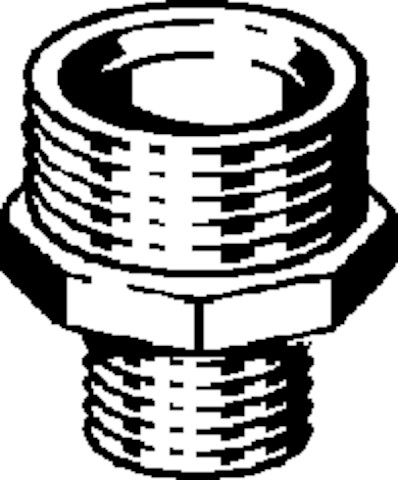 Nypel przejściowy, brąz, gwint R, gwint G. Wyposażenie: Gwint radełkowany, wielokąt, nr wzoru 3246, nr kat. 441 517, R: ⅜ G: ½ ze stożkiem wewnętrznym,