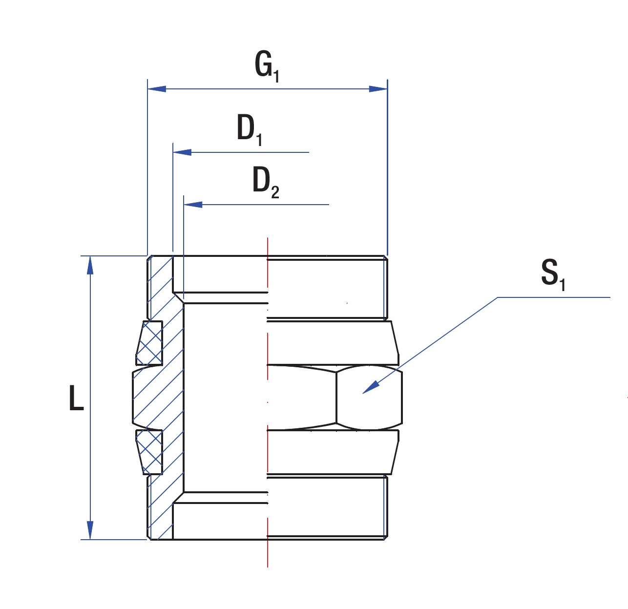 Nypel RUMET mosiądz 1'' x 1'' (GZ), z uszczelką