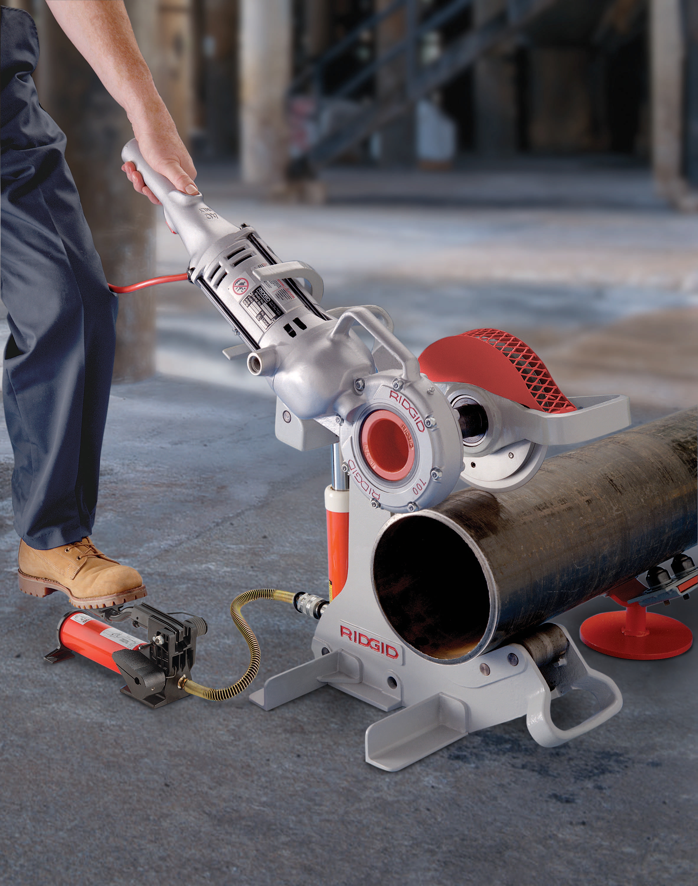 Bezproblemowe cięcie prostopadłe rury lub złączki o długości 6 m. Łatwe cięcie za pomocą przesuwania rury, zamiast jej wycofywania. Brak pyłu ściernego, niebezpiecznych iskier oraz płomieni. Szybkie cięcie rur stalowych i minimalizacja powstawania zadziorów. Doskonałe rozwiązanie do cięcia rur pod kątem łączenia na rowek. Wytrzymała konstrukcja doskonale sprawdza się w terenie i w warsztacie. Średnica rury - od 65 mm (2 1/2") do 200 mm (8"); rura stalowa zgodna ze standardem Schedule 10*/40. Możliwość ukosowania. Zasilana napędem mechanicznym Power Drive serii 700 (do kupienia osobno). Obroty napędu mechanicznego Power Drive — 26–30 obr./min (bez obciążenia).