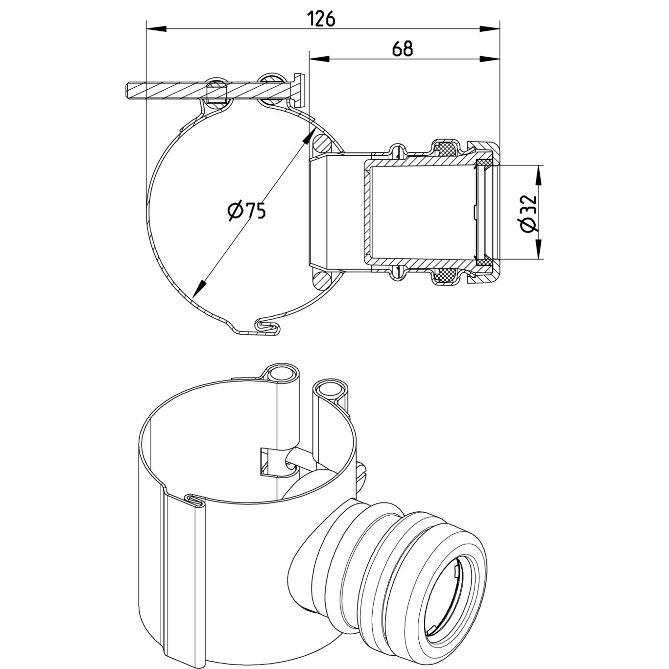 Obejma DN =75 z bocznym dopływem DN =32/40mm