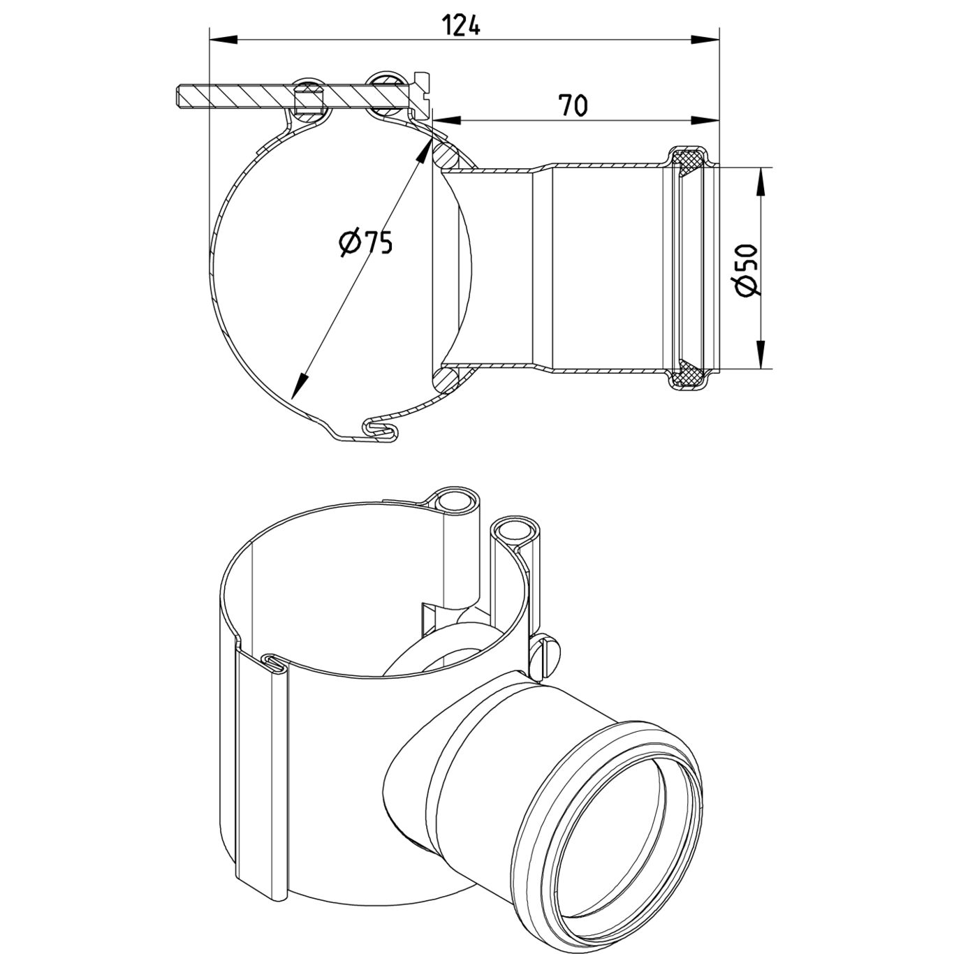 Obejma DN =75 z bocznym dopływem DN =50mm