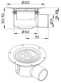 Odpływ podłogowy, regulowana część dolna MULTI, niska