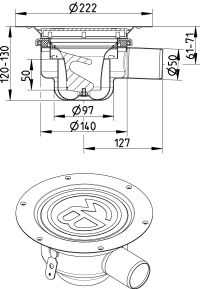 Odpływ podłogowy, regulowana dolna część MULTI, niska
