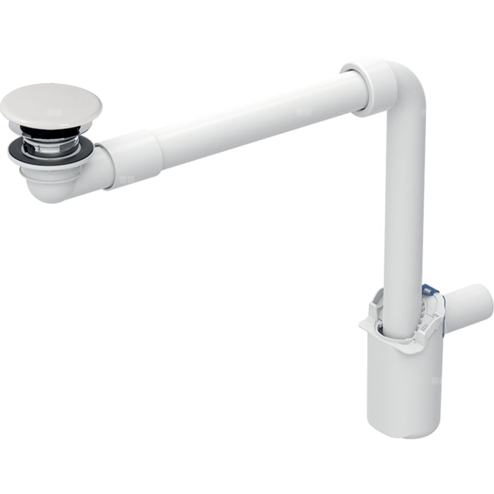 Odpływ umywalkowy, model oszczędzający przestrzeń, wąski, ze swobodną wylewką i pokrywą odpływu, wylot poziomy, do umywalki Geberit ONE, odpływ pionowy: d=40mm, G=1 1/4″, Biały