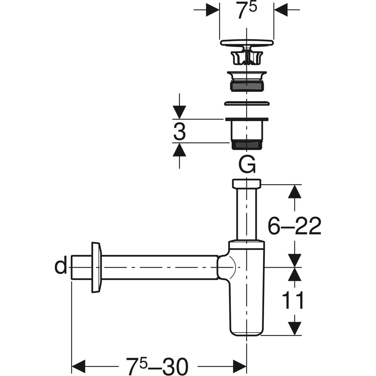 Zgodność z EN 274-3 Odporny na korozję Wylot poziomy Do umywalek Do podłączania umywalek z otworem ø 46 mm Do umywalek o grubości materiału 15-20 mm w pobliżu odpływu Materiał: Mosiądz chromowany / ABS Kolor główny: Biały Powierzchnia: Chrom błyszczący Zawartość: Zawór zestawu odpływowego Uszczelka Uszczelka gumowa z EPDM Pokrywa odpływu z ceramiki Rozetka