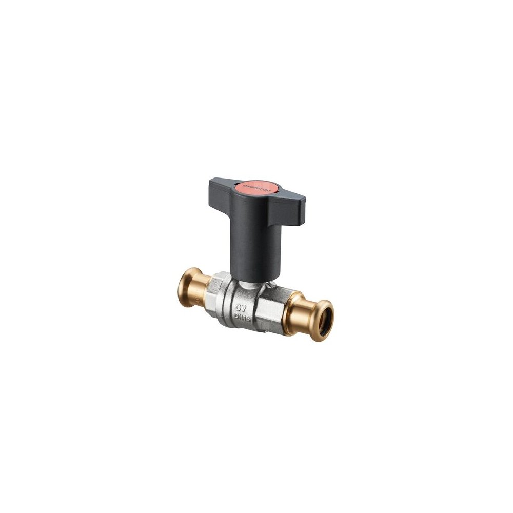 Optibal, zawór kulowy, DN 20, obustronnie złącze prasowane 22mm, z mosiądzu, wydłużone pokrętło z tworzywa