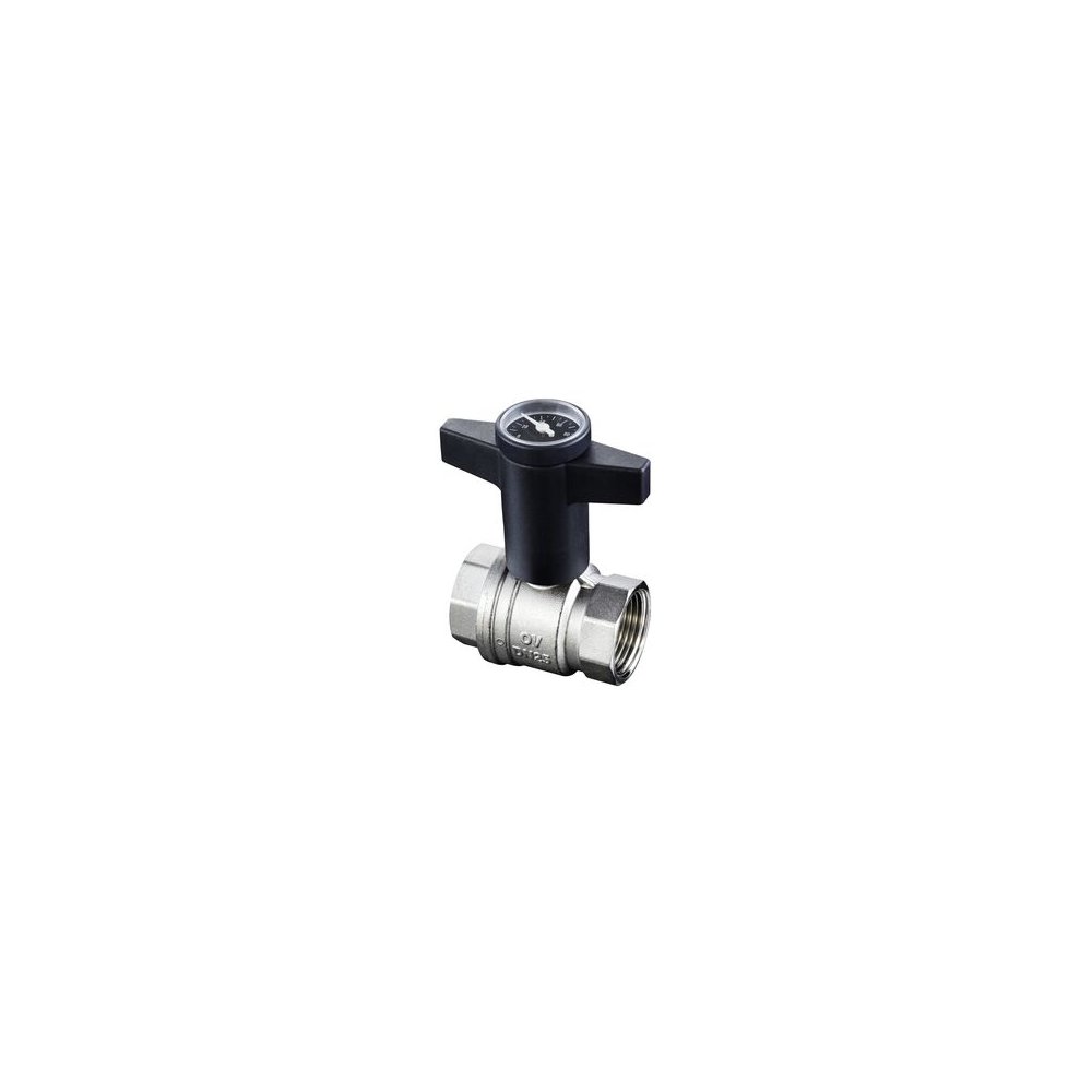 Optibal, zawór kulowy, DN 40, 1 1/2 GW, z mosiądzu, pokrętło z termometrem