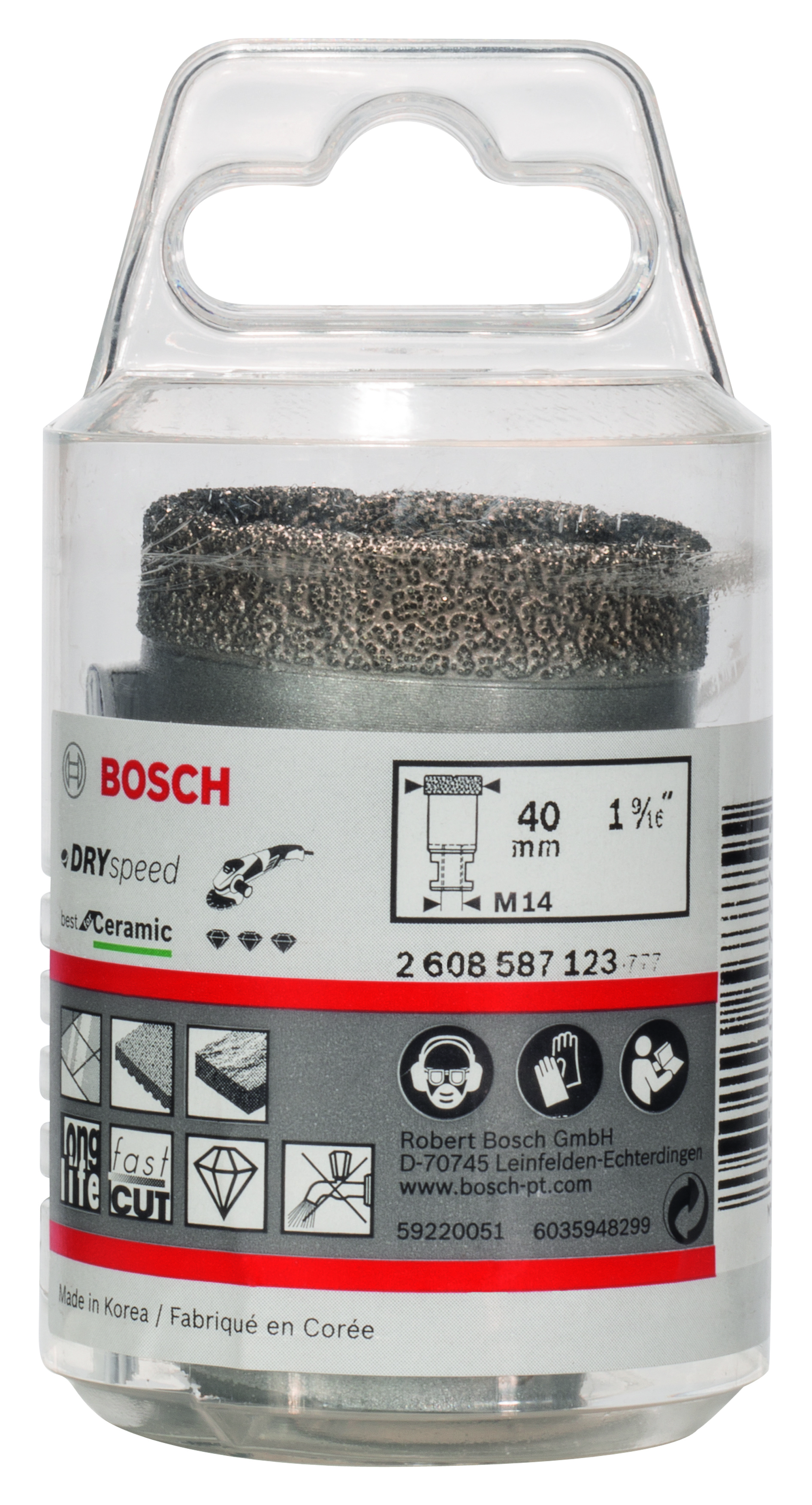 Diamentowa koronka Dry Speed charakteryzuje się wysoką trwałością w przypadku wiercenia na sucho w twardej ceramice