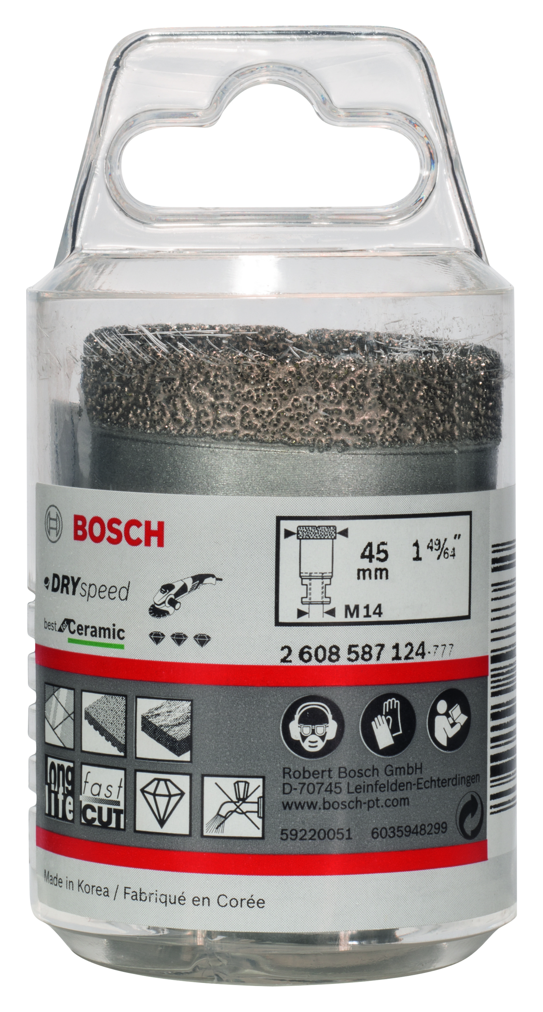 Diamentowa koronka Dry Speed charakteryzuje się wysoką trwałością w przypadku wiercenia na sucho w twardej ceramice