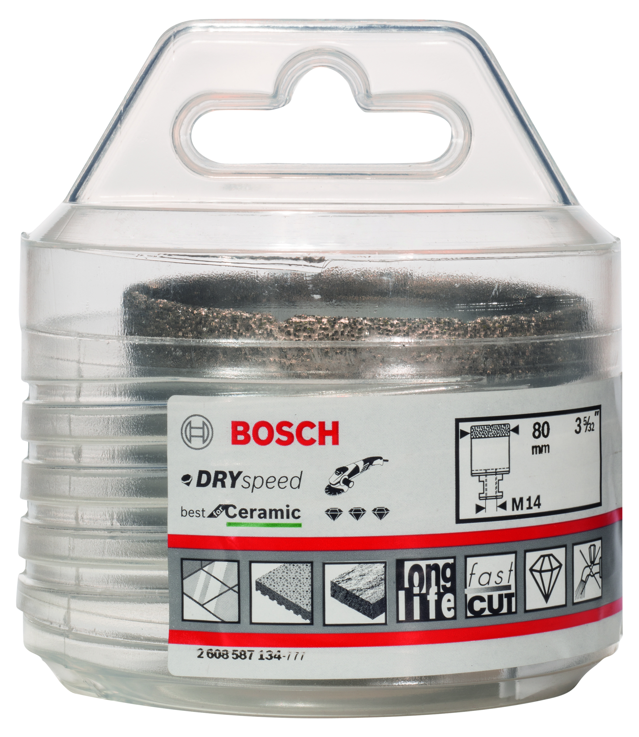 Diamentowa koronka Dry Speed charakteryzuje się wysoką trwałością w przypadku wiercenia na sucho w twardej ceramice