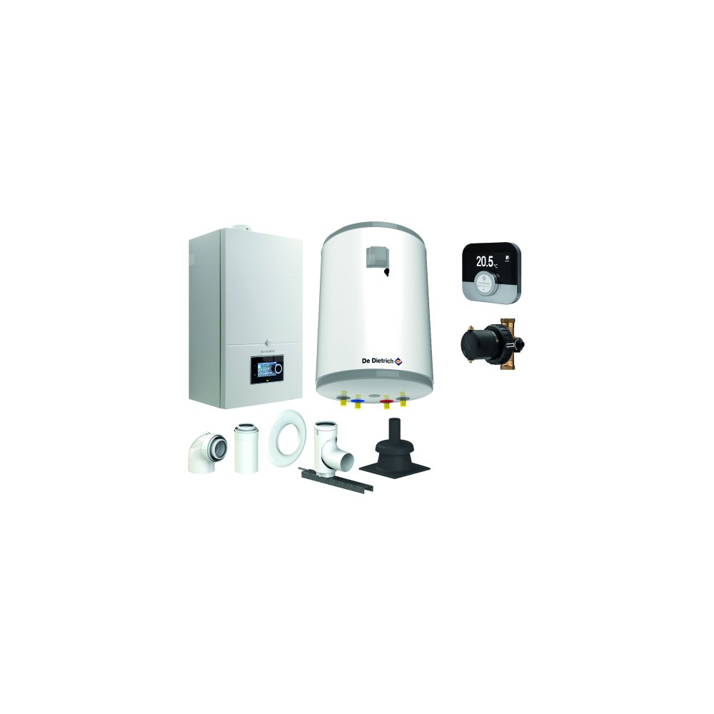 Pakiet - Kocioł gazowy jednofunkcyjny DE DIETRICH Virtuens Smart 24 kondensacyjny wiszący 3.3 - 26.1 kW + RegulatorSMART TC + Zestaw powietrzno-spalinowy szachtowyBazowy PP/Alu fi 60/100 na fi 80 + Zasobnik c.w.uAQUAvie100 + Filtr magnetyczny XS90 A
