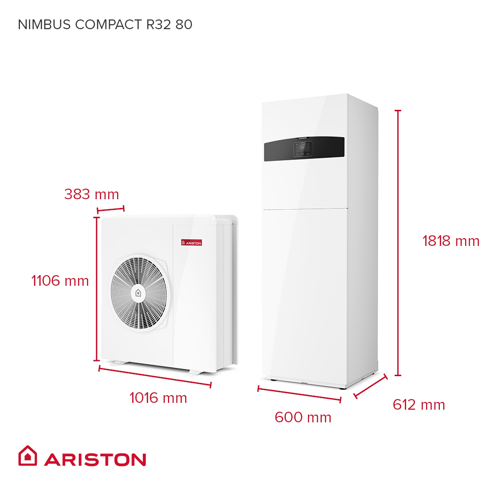 Pakiet - Pompa ciepła powietrze-woda split ARISTON NIMBUS COMPACT S NET R32 7.4 kW 230 V + Moduł naścienny SENSYS HD + Moduł komunikacji internetowej (aplikacja Ariston Net)