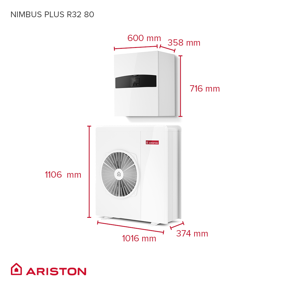 Pakiet - Pompa ciepła powietrze-woda split ARISTON NIMBUS PLUS S NET R32 7.4 kW 400 V + Moduł naścienny SENSYS HD + Moduł komunikacji internetowej (aplikacja Ariston Net)
