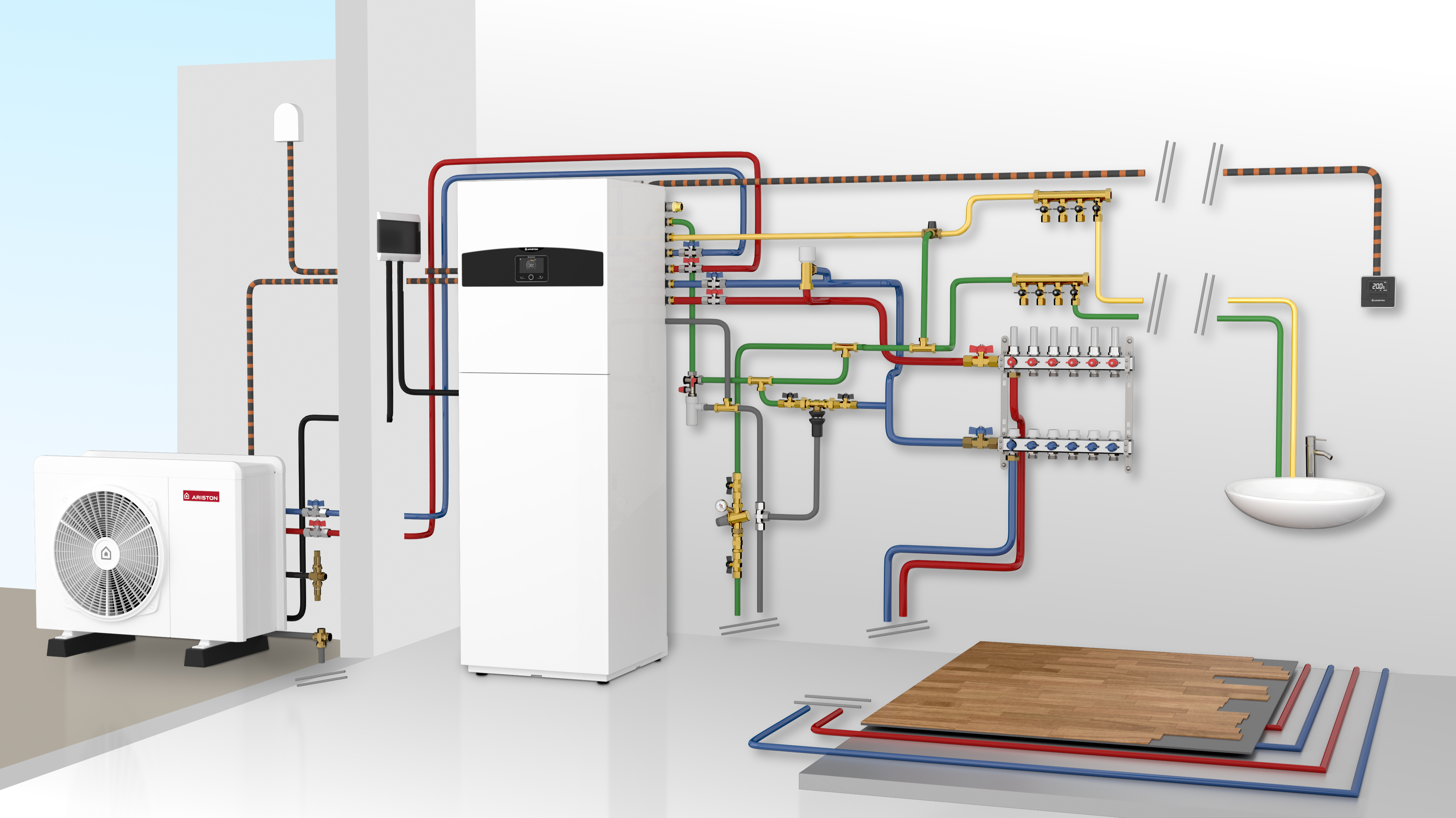Pakiet - Pompa ciepła powietrzna powietrze-woda monoblok ARISTON NIMBUS COMPACT M NET R32 3.5 kW 230 V + Moduł naścienny Sensys Net z łącznością Wi-Fi