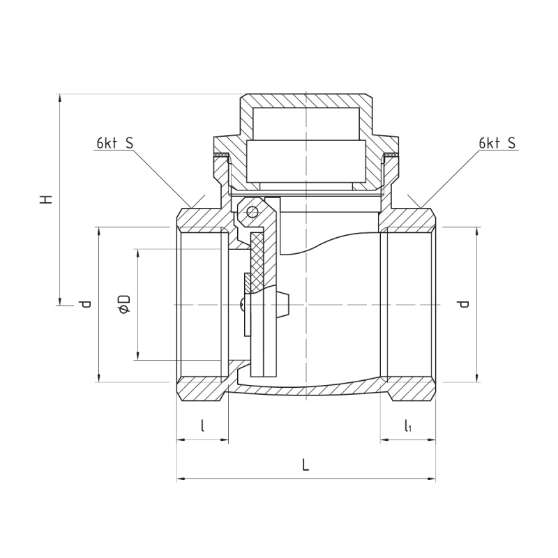 PHA-021 G1 1/4 WW PN10 Zawór zwrotny klapowy CuZn