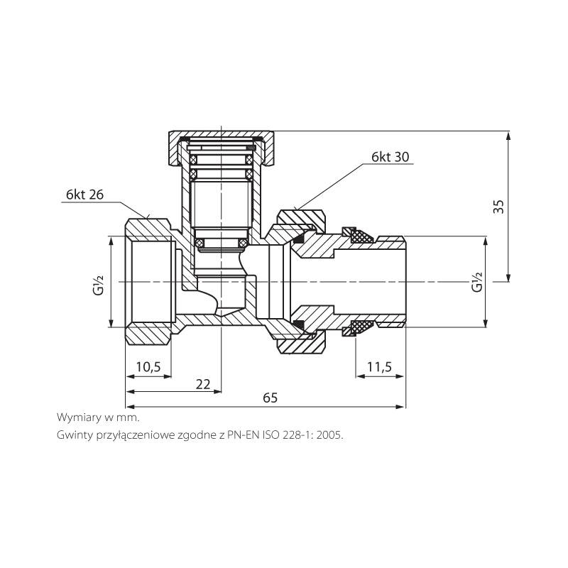 PHA-031A G1/2 WZ PN10 DN15 Zawór grzejnikowy odcinający P gwint samouszczelniający CuZn-C PN-M-75002