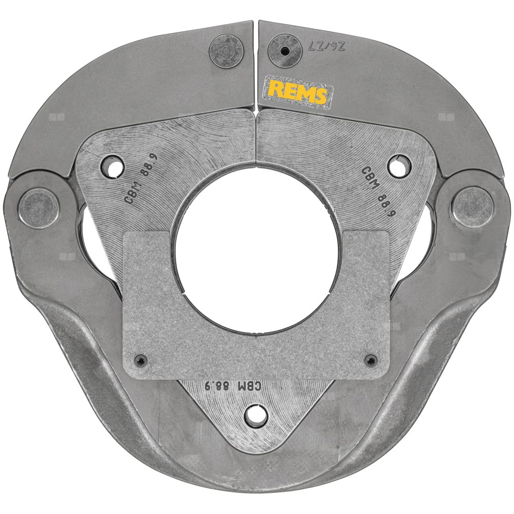 REMS Pierścień zaciskowy (PR-3S) z 3 segmentami dociskowymi, 2 prowadzone obrotowo, do wymagającego zaciskania przy dużych gabarytach. Optymalne zaciskanie poprzez promieniowo sterowany ruch segmentów zaciskowych.