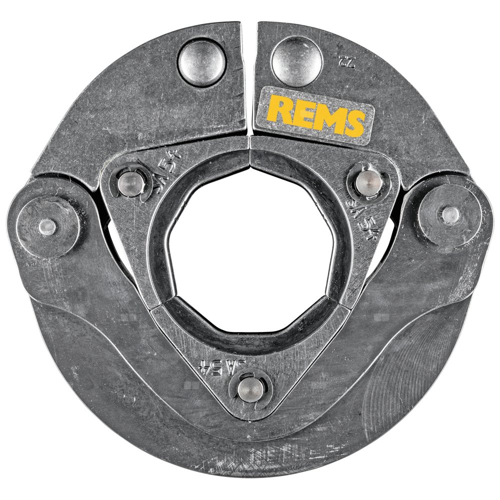 REMS Pierścień zaciskowy (PR-3S) z 3 segmentami dociskowymi, 2 prowadzone obrotowo, do wymagającego zaciskania przy dużych gabarytach. Optymalne zaciskanie poprzez promieniowo sterowany ruch segmentów zaciskowych.