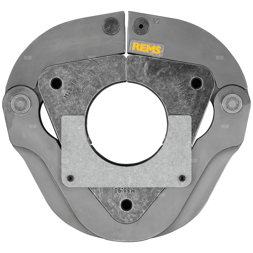 REMS Pierścień zaciskowy (PR-3S) z 3 segmentami dociskowymi, 2 prowadzone obrotowo, do wymagającego zaciskania przy dużych gabarytach. Optymalne zaciskanie poprzez promieniowo sterowany ruch segmentów zaciskowych.
