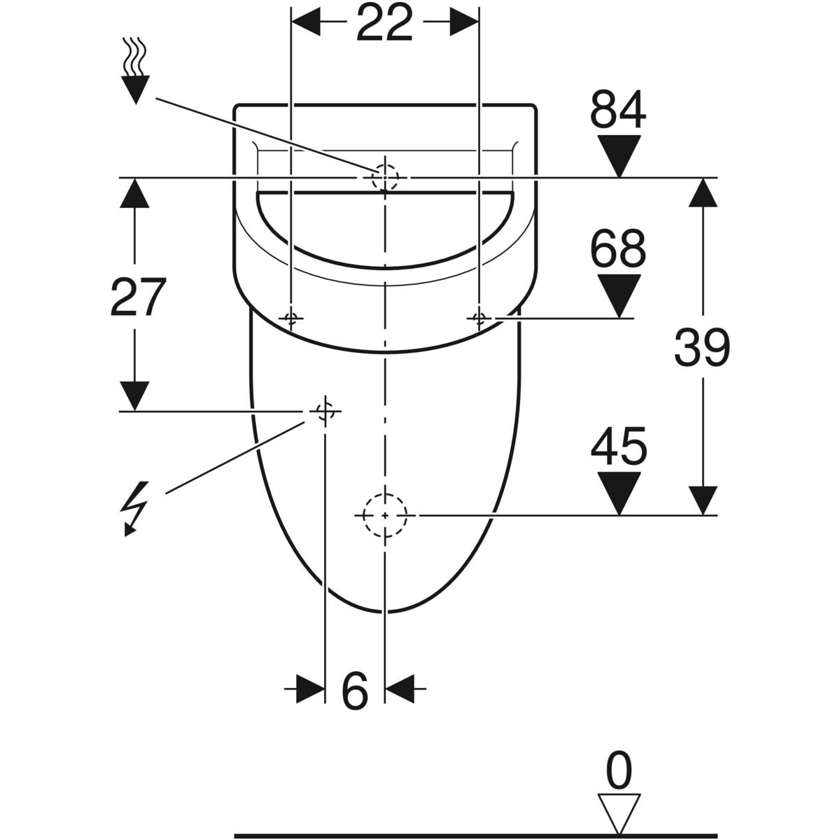 Pisuar Geberit Flow, dopływ z tyłu, odpływ do tyłu: T=33cm, Odpływ=Do tyłu, Dopływ=Z tyłu, Biały