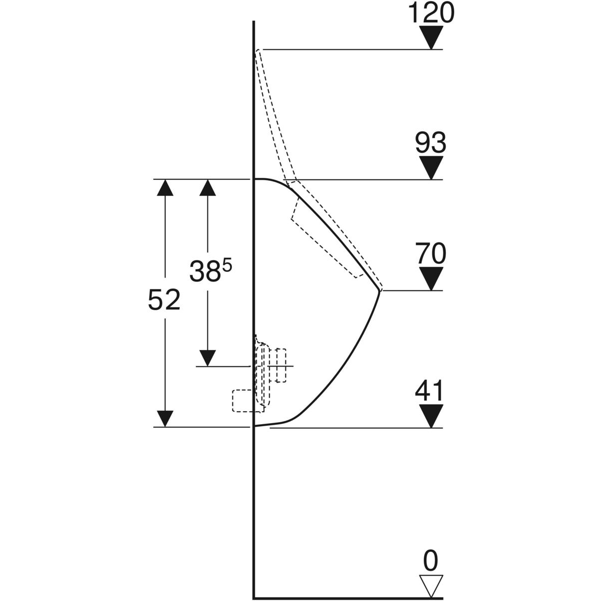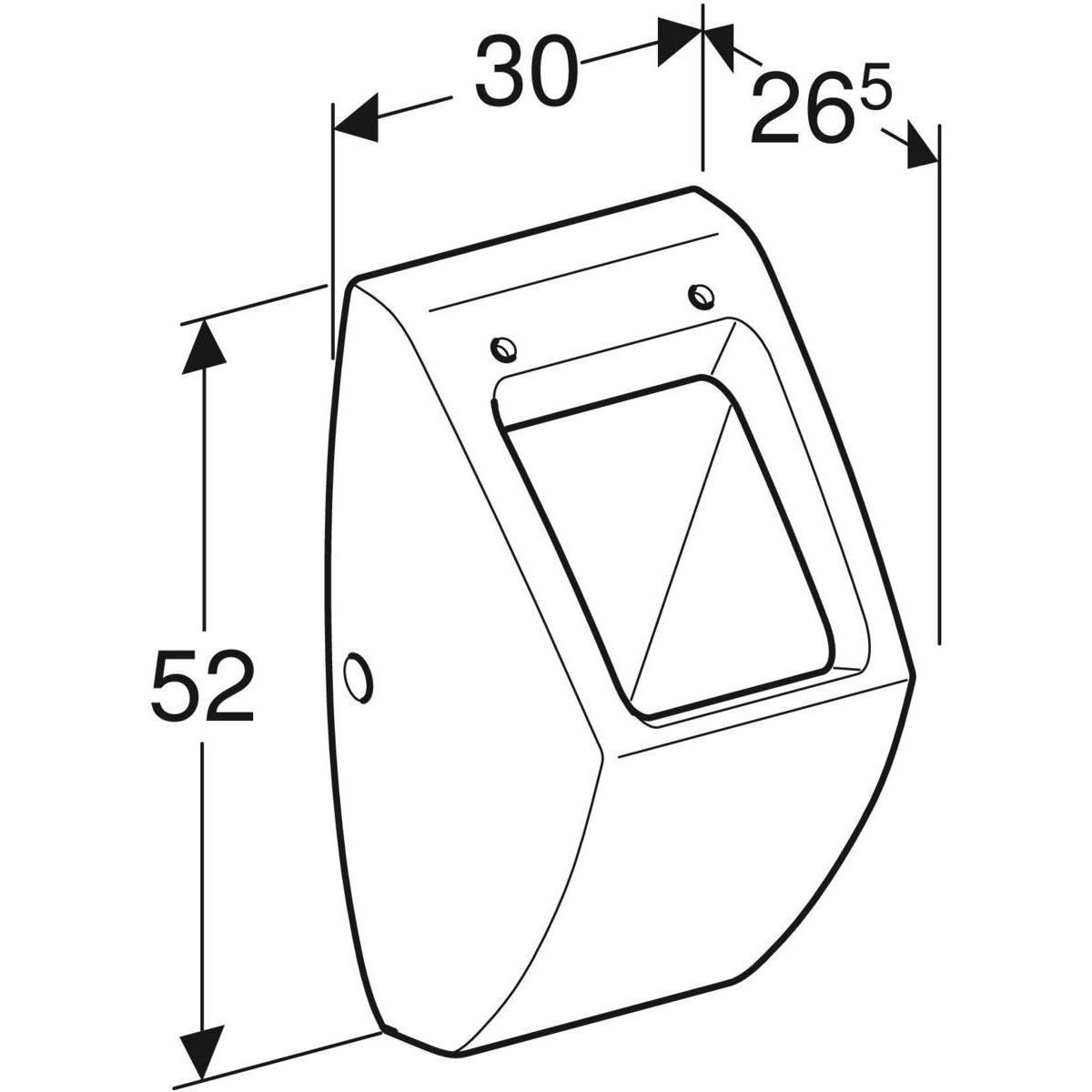 Pisuar Geberit Pareo do pokrywy, dopływ z tyłu, odpływ do tyłu: T=26.5cm, Odpływ=Do tyłu, Dopływ=Z tyłu, Biały