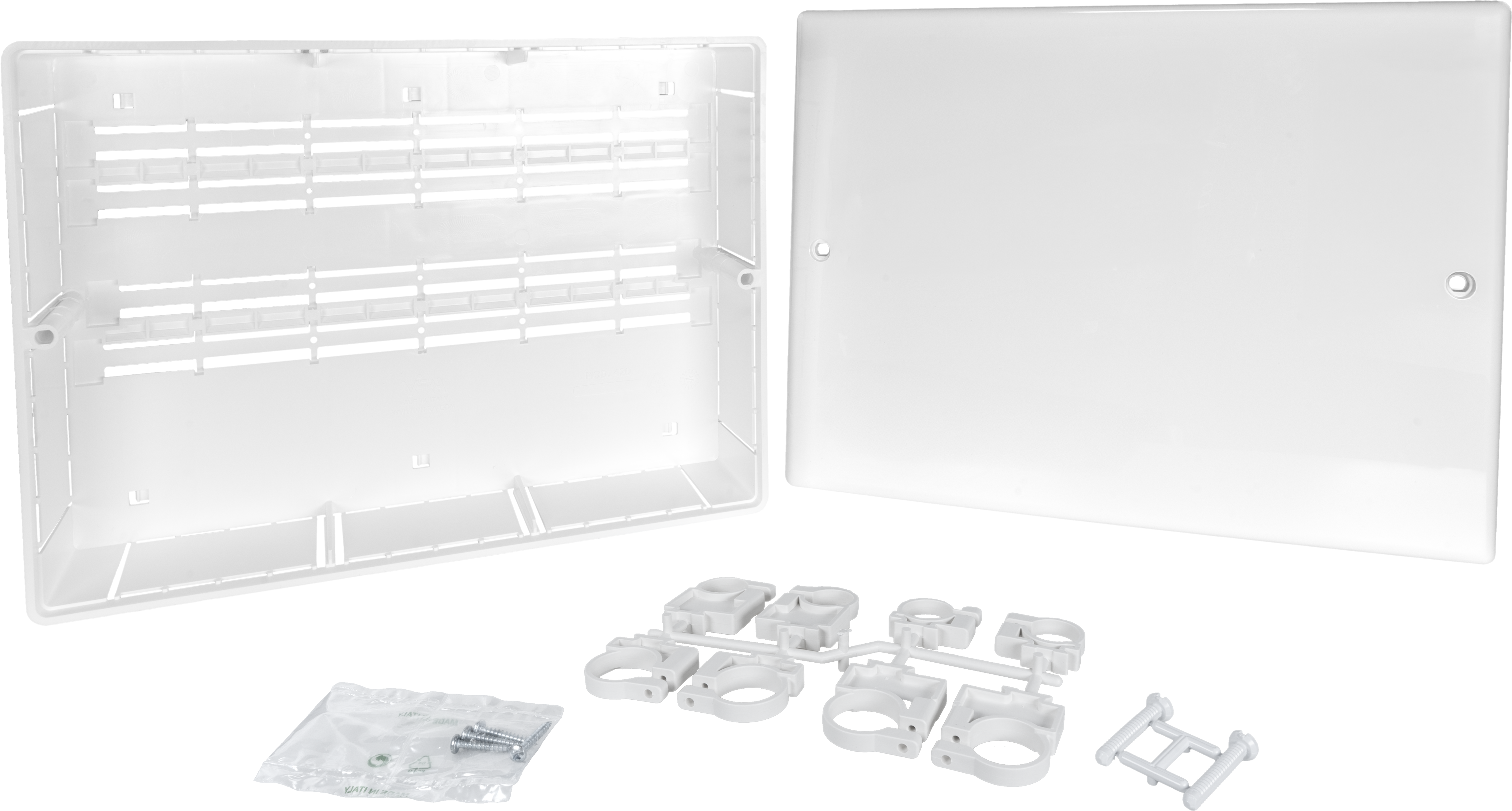 Plastikowa szafka do rozdzielacza wody użytkowej ADM, 8 punktów poboru, 330 X 530 X 88 mm
