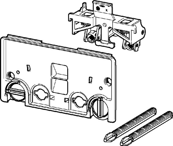 Płyta do zabezpieczenia konstrukcji. Przeznaczenie: spłuczka podtynkowa 3H, spłuczka podtynkowa 3L, tworzywo sztuczne. Wyposażenie: Mechaniczny układ uruchamiający, zestaw prętów uruchamiających, śruby mocujące, poz. rys. 5, nr wzoru 8580.7, nr kat. 786 120,