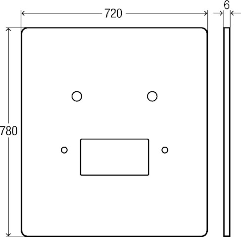 Płytka maskująca. Zastosowanie: Viega Eco Plus-stelaż do umywalki nr wzoru 8164.21, szkło. Wyposażenie: Przycisk z rozetą do indywidualnego ustawienia wysokości ceramiki do umywalki, 2 podwójne dwuzłączki proste z dwuzłączkami zaciskanymi do rur miedzianych d10, 2 rury przyłączeniowe chromowane d10, łuk odpływowy 300 mm mosiądz chromowany, płytka maskująca tworzywo sztuczne chromowana do podtynkowej skrzynki przyłączeniowej, nr wzoru 8064.22, nr kat. 736 910, L: 780 B: 720 s: 6 wykonanie: szkło przejrzyste/jasnoszary