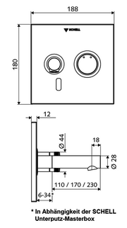 Do skrzynki podtynkowej Masterbox WBW-E-M. Sterowany czujnikiem podczerwieni. Zasilanie bateryjne. Przeznaczony do połączenia w sieć z systemem zarządzania wodą SCHELL SWS. Parametryzowana przez SCHELL Single Control SSC.