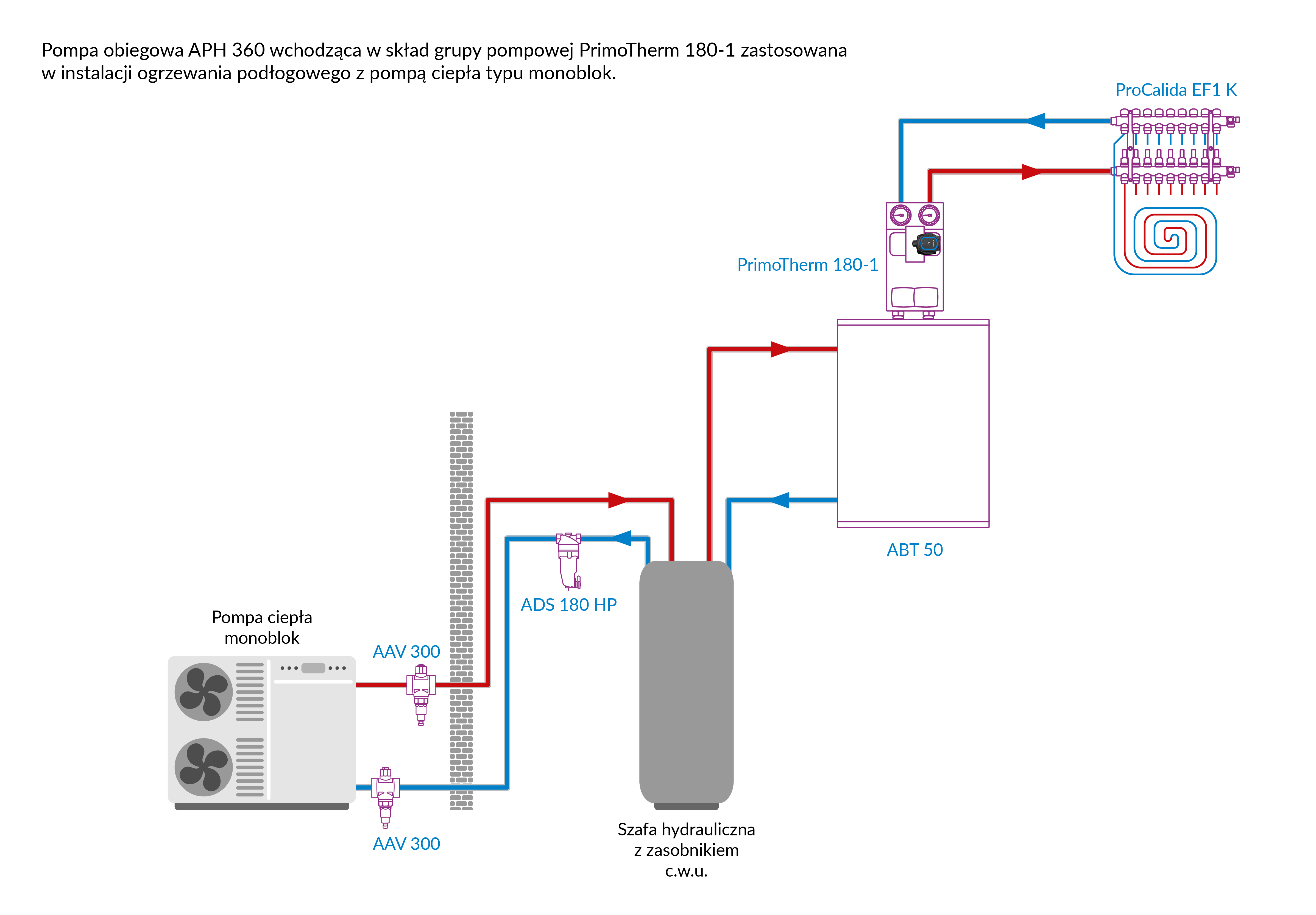 Przetłacza czynnik grzewczy ze źródła do emiterów ciepła.