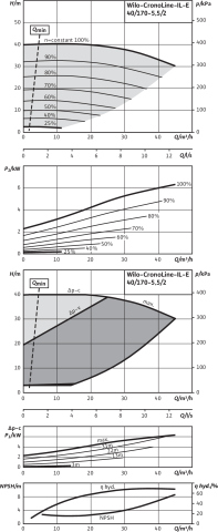 *Interfejsy: Wejście sterujące „Wyłączanie z priorytetem”, „Zewnętrzna zamiana pomp” (działa tylko w trybie dwupompowym), wejście analogowe 0-10 V, 2-10 V, 0-20 mA, 4-20 mA do trybu sterowania (DDC) lub do zdalnej regulacji wartości zadanej, wejście analogowe 0-10 V, 2-10 V, 0-20 mA, 4-20 mA dla sygnału wartości rzeczywistej czujnika ciśnienia, złącze na podczerwień do komunikacji bezprzewodowej za pomocą urządzenia kontrolno-serwisowego Wilo-IR-Stick/IR-Monitor, gniazdo na IF-Moduły Wilo do podłączenia do automatyki budynku, konfigurowana, bezpotencjałowa sygnalizacja awarii i pracy/stanu gotowości, interfejs do komunikacji pomp podwójnych