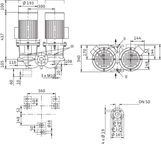 Pompa obiegowa WILO CronoTwin-DL 50/110-1,5/2-S1 typu in-line z silnikiem znormalizowanym 50 Hz, moc silnika 1.5kW 3.2 A 2900 obr/min, wlot Kołnierz DN 50