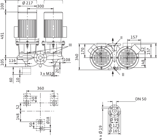 Pompa obiegowa WILO CronoTwin-DL 50/140-3/2-IE3 typu in-line z silnikiem znormalizowanym 50 Hz, moc silnika 3kW 6.15 A 2900 obr/min, wlot Kołnierz DN 50