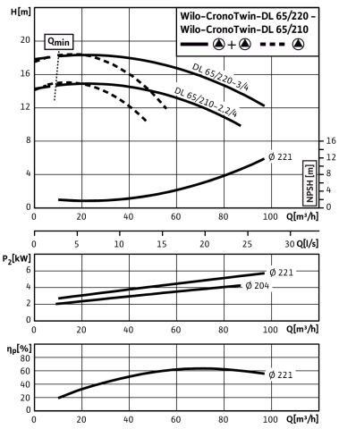Pompa obiegowa WILO CronoTwin-DL 65/220-2,2/4-IE3 typu in-line z silnikiem znormalizowanym 50 Hz, moc silnika 2.2kW 4.9 A 1450 obr/min, wlot Kołnierz DN 65