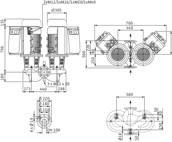 Pompa obiegowa WILO CronoTwin-DL-E 100/150-15/2-S1 typu in-line z silnikiem znormalizowanym 50/60 Hz, moc silnika 15kW 27.8 A 2900 obr/min, wlot Kołnierz DN 100