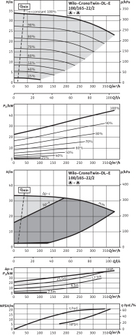 Pompa obiegowa WILO CronoTwin-DL-E 100/165-22/2 IE4 typu in-line z silnikiem znormalizowanym 50/60 Hz, moc silnika 22kW 39.9 A 2900 obr/min, wlot Kołnierz DN 100
