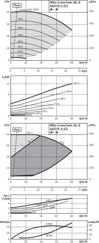 Pompa obiegowa WILO CronoTwin-DL-E 40/170-5,5/2 IE4 typu in-line z silnikiem znormalizowanym 50/60 Hz, moc silnika 5.5kW 10.7 A 2900 obr/min, wlot Kołnierz DN 40