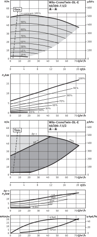Pompa obiegowa WILO CronoTwin-DL-E 40/200-7,5/2 R1 IE4 typu in-line z silnikiem znormalizowanym 50/60 Hz, moc silnika 7.5kW 13.8 A 2900 obr/min, wlot Kołnierz DN 40