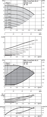 Pompa obiegowa WILO CronoTwin-DL-E 80/160-11/2 IE4 typu in-line z silnikiem znormalizowanym 50/60 Hz, moc silnika 11kW 20.6 A 2900 obr/min, wlot Kołnierz DN 80