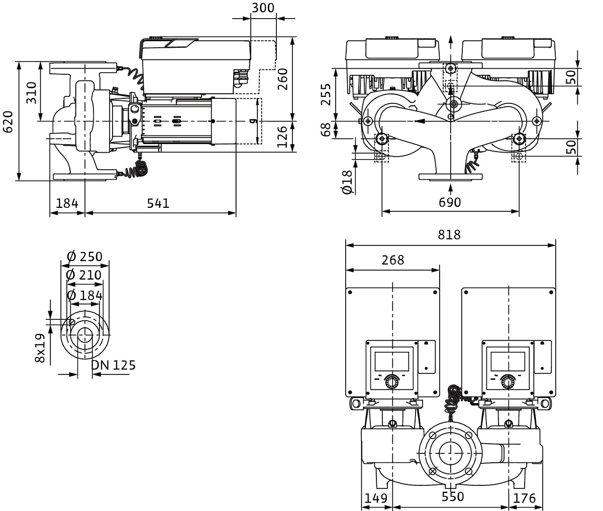 Pompa obiegowa WILO Stratos GIGA 2.0-D 125/1-7/2,2-R1-S1 typu in-line z silnikiem znormalizowanym 50/60 Hz, moc silnika 2.1kW 3.6 A 1410 obr/min, wlot Kołnierz DN 125
