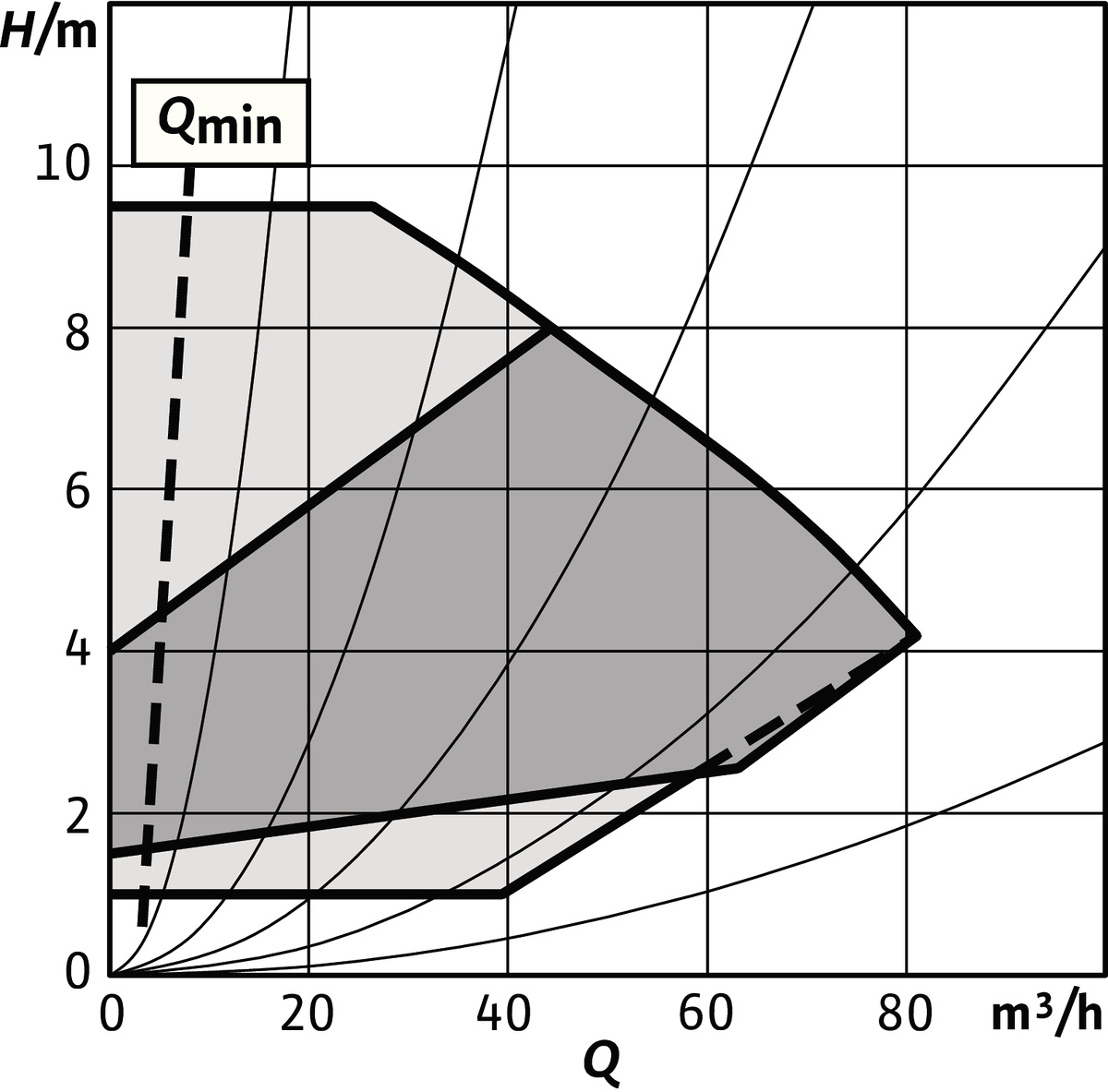 - Nastawne ograniczenie przepływu przez funkcję Q-Limit (Qmin. i Qmax.)