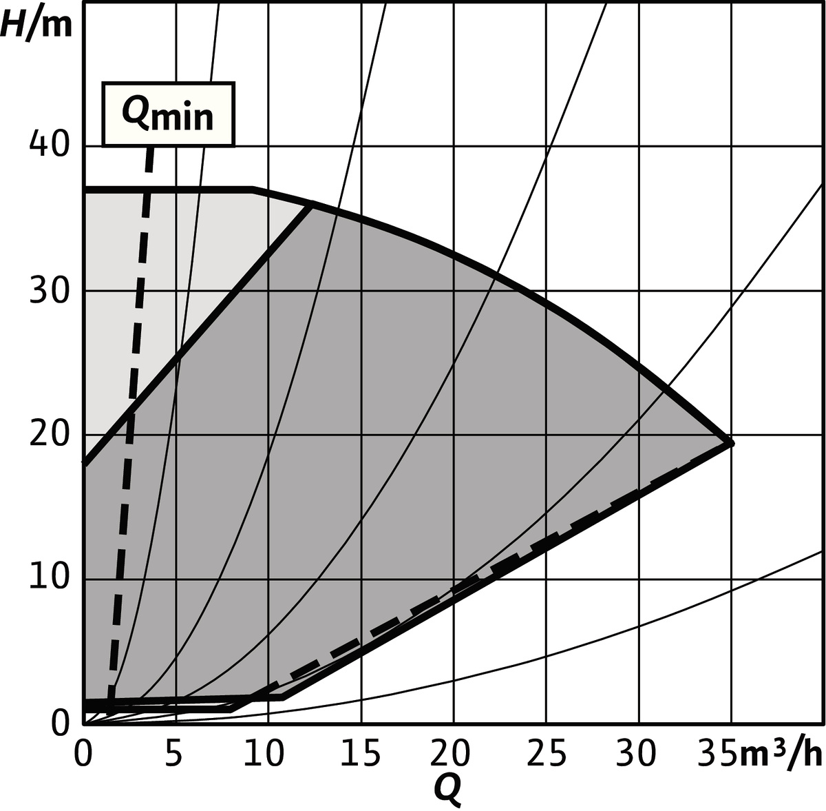 - Nastawne ograniczenie przepływu przez funkcję Q-Limit (Qmin. i Qmax.)