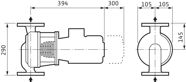 Ten typoszereg przeznaczony jest do montażu na rurociągu z poziomym wałem silnika/pompy.